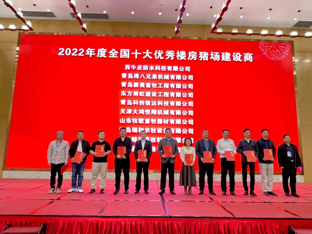 2023年4月10-12日,在山東青島國(guó)際機(jī)場(chǎng)君廷酒店舉辦的“第三屆樓房養(yǎng)豬論壇”上,天津大鴻恒翔機(jī)械有限公司榮膺“2022年度全國(guó)十大優(yōu)秀樓房